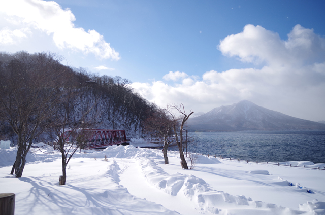 ということで、札幌からの道々はすごい吹雪だったんですが、支笏湖は快晴です♪