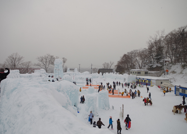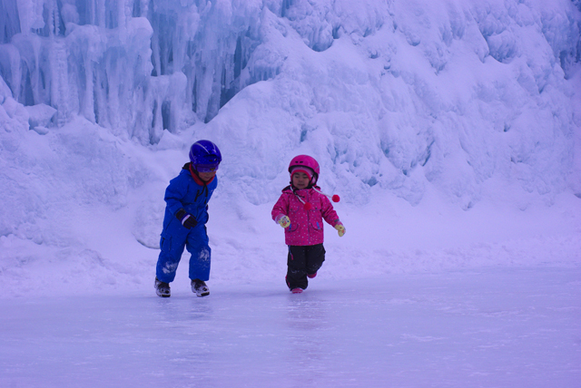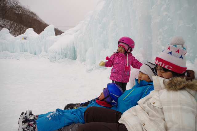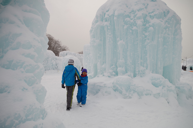 氷瀑まつり会場自体は、それほど広くはありませんが、逆にコンパクトなのと雪祭りほど人がいないので、子供達にとってもちょうど良いお祭りみたいです。