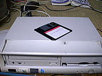 | もともと数年前に会社で使っていたマシンですが、その後新機種導入に伴い社内の必要な方へ払い下げられた(というか無償供与された)ものです。しかし課長のお宅ではあまり活躍できなかったらしく、たまたまホームページを見て、私に必要ないかどうか尋ねられたので、頂戴しました。 |