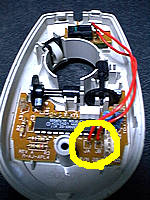 | 今回半田を付け外ししたのはここの部分です。半分壊れたマウスをいくつか所有している方は、試してみてはいかがでしょうか?半田付けもたまには楽しいですし(笑)。 |
