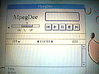 PowerBook190csでMp3を鳴らしたレポートは以前このページで紹介しましたが、その後、実はMpeg-Decのバージョンが新しくなっていたので(3.1.1)、ダウンロードして 使っていました。しかし以前のバージョン(2.5.5)ではMP3を鳴らすとほかに何もできなかったので、新しいバージョンでもそうなのでは?という先入観から、試さずに使っていました。しかし、何となく「ただ鳴らすだけではつまらない」と思い立ち、テキスト打ちができる設定を探してみようと、同時に起動してみたところ、なんだか普通 にテキスト打ちできちゃいました(笑)。もちろん、音が途切れるなんてこともありません。 |