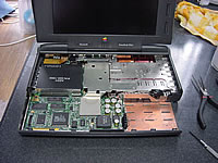 | サブマシンはすっかりPowerbook5300Cに空け渡してしまった感のある190csですが、サブの座を降りたらその分いじりやすくなったりして(笑)。使わなければならないマシンなら、ばらしてもその日のうちに組み上げなければなりませんが、樹理はまだまだノートPCなんぞをいじるわけもなく、私の好きにできるわけです。 |