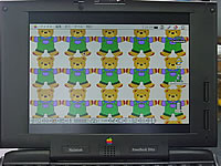 | 190csの液晶はFSTN10.4インチ256色ディスプレーです。これが正面の正しい角度で見ている分にはいいのですが、少しでも角度が変わると見にくいんです。しかし、190csの上位機種であるPowerbook5300Cもしくはceに使われている10.4インチTFT液晶と交換することで、フラットで見やすいディスプレーを手に入れられるわけです。ということで、ネットオークションでヒンジ部の壊れた5300Cの液晶部分のみを落札しました。 |