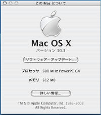 うんうん、起動もスムーズだし快適快適。やはり512積むと体感が早くなったように感じます(笑)。そこで「ホームページでも更新しようかな?」と思い立ち、OS9で起動し直しました。私はホームページ作成だけが9環境なんです。ところが待てど暮らせど起動してきません。ん?と少し考え、P-RAMクリヤーをかけました。ところが今度は起動音すらしません。もちろんモニタのDVI信号もでていません。真っ暗な画面 を見つつ、15分も待ったでしょうか。今度は増設したメモリを外して起動してみました。すると起動音がしてモニタ信号もでていますが、やはり起動しません。P-RAMクリヤーを再度かけ、今度こそ!!と起動してみると、Xで起動してきました。とりあえずデータをバックアップして9側のハードディスクをフォーマット。再インストールして9起動。しかし起動せず(泣)。仕方がないのでX専用機にしようと思い、P-RAMクリヤーするも、今度はXも起動せず。泣きながら10.3CDから起動を試みるが起動せず(青)。 うーむ、なんてこったい。「これは交換した部品すべてを調べる必要があるかも」と思い、今度はメモリを全て外し、CPUも元のG3 400に交換。「今度こそ!」と意気込んで起動したところ、10.3CDから何とか起動。すかさずディスク修復ユーティリティーで修復を試みるも途中でフリーズ(半笑い)。強制再起動してCDからフォーマット、10.3の再インストール。インストールは無事に終了。ハードから起動もしました。そこで今度はCPUをG4に戻し、メモリを全て刺して起動・・・できたー!!!