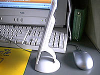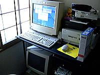 最近AppleでAirMac Expressなるものが話題を呼びましたね。私も少し欲しいなーと思ったのですが、我が家でこいつの恩恵を受けられるのはi-bookだけなんですよね。しかもAirMac Card入ってないし(笑)。ということで、こいつの購入は却下です。これの売り文句「iTunesライブラリを共有して好きな場所で音楽が聴ける」っていうものでしたが、それって今の環境でもできるんじゃないかな?と思い、早速挑戦してみました。私の所有する唯一の無線マシン、こいつです。