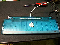 中にフィルムが入っています。このフィルムがキーの圧力を入力信号にしてくれるものです。今回はこの辺が怪しいと睨んで、修復を試みます。