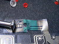 鉛筆です。これでパターンの切れているところを修復してあげます。といっても、切れているところをなぞってあげるだけですが。これで通 電してくれればもうけものです。フィルムは2枚で一組ですので、丹念に切れているところを探してあげて、鉛筆でカキカキしてあげます。後は逆の手順で組み上げてあげるだけです。
