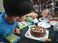私からは凧、というか昔のゲイラカイトみたいなやつをプレゼントしました。つか、英語の勉強はまだ早いんじゃないかと思うんですけど(笑)。というよりカードを見てみたら、知らない単語が多々あるんですが(汗)。