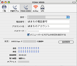 さて、私はというと、会社から貸与されているFOMAを使って実験です。