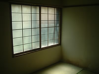 ここがパソコン部屋だったところです。畳に足の跡が付いているのが、私の机があった場所です。荷物がなくなると広く感じますね。