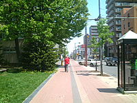 ここも通勤の途中にある西区役所近前の歩道です。なかなかいい感じの歩道なんです。左手には小さな公園みたいな緑地と西区図書館があります。