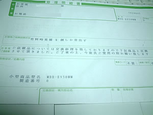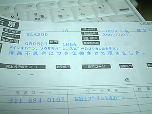 修理伝票には「メイン基盤・操作基盤・スピーカー交換」とありました。これバラすよりも、新しいA300もらった方が安上がりのような交換内容ですね(笑)。
