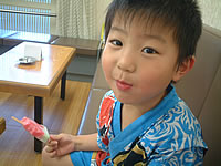 風呂上がりには最近の樹理のマイブーム「スイカバー」を食べました。「種も食べていいんだよ〜」と教えてもらいました(笑)。いや、それ知ってるんだけど(苦笑)。