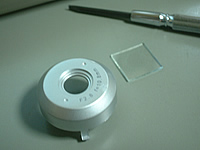 さきほど外したレンズカバーを使います。まず透明なレンズカバーをボンドで本体側レンズに取り付けます。