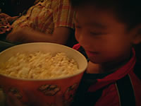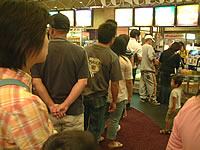朝一番上映は大人1200円になるので、9:45分の回に合わせて行ったんですが、すでにポップコーン売り場はこの状態。朝からけっこう混んでますね。と思ったら、これはマジレンジャーと仮面ライダー響に来ている親子連れが多いみたいで、スターウォーズエピソードIII吹き替え版はガラ空きでした(笑)。