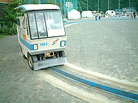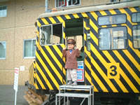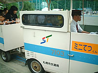 もちろん市電フェスティバルですから、こんなサービスもありました。札幌名物「ささら電車」で記念写真です。ささら電車というのは、車両の前部分に竹でできた「ささら」という回転ほうきみたいなものを付けた除雪電車です。もちろん今でも現役で、今年の冬も走ると思います。札幌の雪はさらさらなので、ささらで掃いて回るだけで、十分に除雪できるんですね。