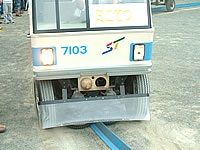 この写真でわかりずらいのですが、中心部でレールを挟み込んでいるタイヤがあるんですね。かなりよくできていると思いました。