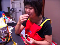 ステーキは一人前だったので、三人であっというまに平らげてしまいました。樹理が持っているのは「牛棒(べこぼう)」というやつで、薬味を練り込んだハンバーグみたいなものを串に付けて焼いたものです。