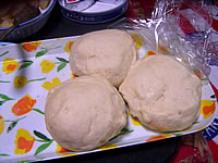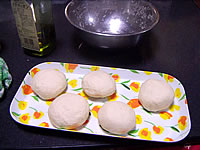 ということで、普段は手間がかかるのでやっていないものを作りましょう。つかピザ食べたかったんですが、冷凍はいまいちだし、宅配はけっこう高いし・・・。ということで自作です♪まず小麦粉にイースト菌と砂糖・塩を入れ、人肌の牛乳でもっちりしてくるまでこねてあげます。良い固さになったら小分けにしてラップをかけ、こたつの中で発酵させます。