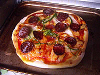 で、最初の写真になるわけです。奥さんには大好評!そりゃ〜、学生時代に4年間もピザ屋でバイトしてましたからね〜。生地の分量が適当だったのでちょっと発酵が甘かったんですが、逆にクリスピー風になって良かったみたいです。
