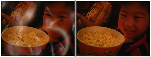 そうするとこんな風になります。左が霊が写り込んでいるもの、右が元の写真です。樹理の鼻のあたりにははっきりと顔が写り込んでますよね(寒)。ちょっとしたいたずら写真にどうでしょうか?