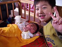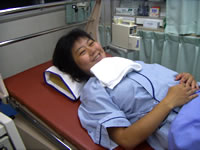 正面顔は出さないようにしようと思っていましたが、生んだ直後の奥さんです。あまりにいい笑顔なので、やっぱり載せちゃいました(笑)。奥さんから苦情が来たら削除しますね。しかし女の人は凄いですね!あんなに大変な目にあっているのに、直後にこんな風に笑えるんですから。