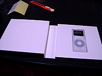 ネットで色々と調べたところ、どうもiPod nanoは傷がつきやすいというのがあちこちでアップされています。ということで、まずは保護シートを貼りました。あまり上手く貼れずに、空気がちょっと入ってしまいましたが、傷がついちゃうよりはいいでしょう。