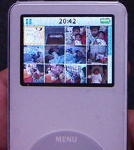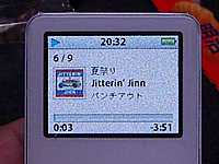 私自身初めてのiPodシリーズなので、前の製品と比べたりはできませんが、nanoのカラー液晶は大きさの割にはけっこう見やすいですね。保護シートが貼ってあるのでちょっと荒れて見えますが、実際にはかなり見やすいです。ジャケット表示も「この大きさじゃね〜」と思っていたんですが、けっこう細部まで見えて楽しいです。