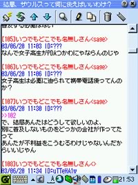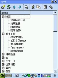 見づらいのでPCではほとんど見ない2ちゃんですが、逆にzaurusの画面の方が見やすいなんて。特に一覧から探すのはPCでは至難の業ですが、このq2chでは見やすく簡単です♪
