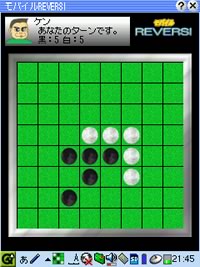更にオセロゲーム「モバイルREVERSI」です。グラフィックがきれいで、マシン相手でもけっこう難しいので、暇つぶしに最適です。