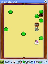 最後は「パズルかちかちやま」です。火のついた岩を狸にぶつけて退治するパズルゲームです。なかなか面白いのですが、一度終わりにするとまた最初からやらなくてはならないのが難点でしょうか(笑)。