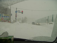 運転していても、視界が50mあるかどうか・・・。とにかくひどい吹雪です(汗)。