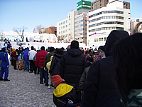 動いてないじゃん(汗汗)。この後に警備係のおじさんが「4時間待ち」というプラカードを持って登場。つまりもう駐車場はいっぱいなのね(泣)。ということであっさりとさとらんど会場を諦めて、大通会場へ。