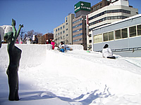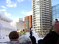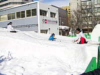 いやはや、大通会場も混んでるのね。大通西3丁目の滑り台です。しかしこのくらいならということで、奥さんと樹理は行列へ。私と宏樹は下で待ちます。