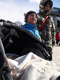 写真ではけっこう良い天気に見えるんですが、風があって体感はもちろん氷点下です。ということで宏樹はもちろん冬用のコートにお包みをかけて完全防備です。