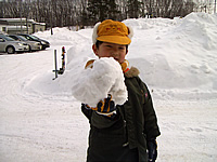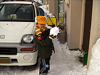 午前中、暖かな日差しの中で、樹理は大きな雪玉作りに夢中になっていました。少し解け気味なので、転がせばどんどん大きくなっていきます。