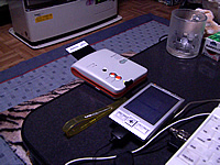 ちょっとザウルスの画面が見づらいのですが、画面で表示している写真ををPiviでプリントしたものです。けっこうきれいにプリントできます。しかし問題が一つ、画像の転送に非常に時間がかかるんです。私は写真の保存サイズを1600×1200で設定しているんですが、これだと2分以上かかるんです(汗)。Piviのページを確認したら640×480だと転送時間20秒なのに対して、1280×960だと70秒とぐんと転送時間が長くなります。それ以上のサイズではこの転送時間も仕方ないでしょうか。qpPhotoでザウルス上で画像リサイズしようと思ったんですが、画像サイズが大きすぎるのかフリーズしちゃうんですよね。ま、赤外線のないibookの赤外線ポートとして使えば、リサイズはibook側でできるんでいいんですが(笑)。