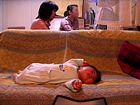 おぉ、あそこに米粒のように見えるのは「仮面ライダーカブト」ではありませんか!寒さのせいでしょうか?心なしか動きが鈍いような気がしますが、間違いなく仮面ライダーです!ということで、宏樹は奥さんとおっぱいタイムに丸井デパートの授乳室へ、樹理と私は仮面ライダーショーを見学しました。実際のショーの最中は撮影禁止だったんですが、なんというか、夏に見たマジレンジャーショーなんかよりかなり端折った感じの短いものでした。う〜ん、やっぱり冬の屋外は体力的に厳しいのか?とりあえず、樹理と私は体が冷えきってしまったので、このあと奥さんと合流して帰宅しました。疲れた(笑)。