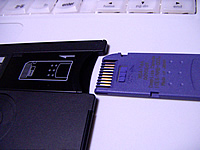 何に使うかというと、コレ!以前会社でズームが壊れて廃棄になったものを、バラして直したSONYのDigital Mavica MVC-FD85です。かなり大きく重い上に、今となってはほとんど使い道のない130万画素。さらに記録媒体がフロッピーなので画像が数枚しか保存できません(汗)。でもせっかく直したのに使えないのもしゃくなので、メモステが使えるアダプタを探していたんです。