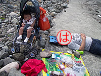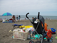 というわけで、早々に海へ。というか、はまなすの丘公園の隣が石狩海岸なんで、車で数分なんです(笑)。しかしまぁ、宏樹は着くなりお昼寝です。