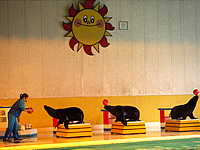 まずはペンギンショー。・・・お兄さん、ペンギン達がぜんぜん言う事聞いてませんが(汗)。