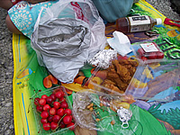 さてさてお昼、お弁当は手作りです♪ まぁ、おにぎりを握って手羽元を揚げただけですが。休みの日なのでちょっと手抜きです(笑)。