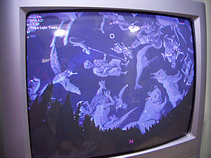 最初に映してみたのは、プラネタリウム好きな樹理のリクエストに応えて「Stellarium」です。以前にもご紹介したのですが、非常に優れたフリーウェアで、しかもMac・Win・Linuxというプラットフォームに対応していますので、興味のある方はぜひ試してみて下さい。