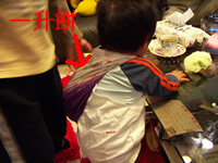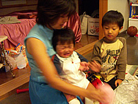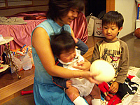 更に1歳になったら「一升のお餅」を背負わせて歩かせるんだそうで、宏樹にとってはいい迷惑だったみたいです(笑)。それでもテーブルに捕まりながらふらふらと立ち上がってはいましたが。
