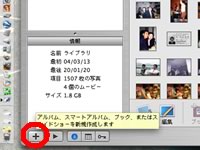 作り方は簡単です。まずiPhotoウィンドウの左下にある「+」マークをクリックします。