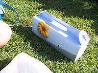 ibookとプロジェクターが乗っているのがビリヤード台に板を敷いてもらったものです。もうバッチリですね♪ただ音だけはアンプの場所が遠かったので、仕方なくibookのスピーカーにマイクをくっつけて出したんですけど。