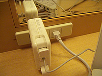 なんだか面倒くさい会社行事のおかげで、東京に一泊する事になりました。東京ビックサイトで集まりがあったんです。時間があればElanさんとかとお会いしたいな〜と思っていたんですが、なんせ泊まったのが有明のワシントンホテルですし、ホテル到着予定が23:00過ぎでしたので、残念ですがだれともお会いできそうにありません。「あ〜あ、面倒くさいな〜」と思いながら、とりあえずホテルのサイトをチェックしていました。「ズボンプレッサーが標準で設置されているんだ〜。ま、ビジネスマン向けだろうしね〜」「歯ブラシもひげ剃りもあるんだ〜。ヘアワックスだけ持ってけばいいかな〜」などとのんびり考えていると、「全室100M LAN完備」の文字が!こ、これは(汗)、ibook持って行くしかないじゃ〜ないですか!(って、最初から持って行くつもりだったんですが)