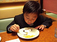 あまりに待ち時間が長かったので、近くのファミレスでおやつタイムです♪ 撮影中は機嫌の悪かった宏樹も、これでちょっとご機嫌になりました(笑)。二人ともお疲れさま!