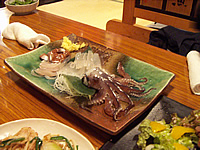 もちろん函館と言えばイカですよね!活イカも注文しました。足の方はまだウネウネと動いています。頭の方を刺身で食べて、足の方は改めて火を通してもらいます。