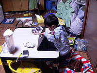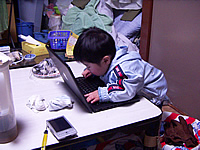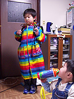 こんなふうに私がMacbookに興じている間に、奥さんは樹理の入学前事前準備に余念がありません。今日もレインコートを購入してきました。・・・しかしこの色使いって・・・(汗)。心なしか樹理も浮かない表情のような。しかも宏樹の目線が「にいちゃん大変だね〜」と言っているように思えてならないんですが(笑)。
